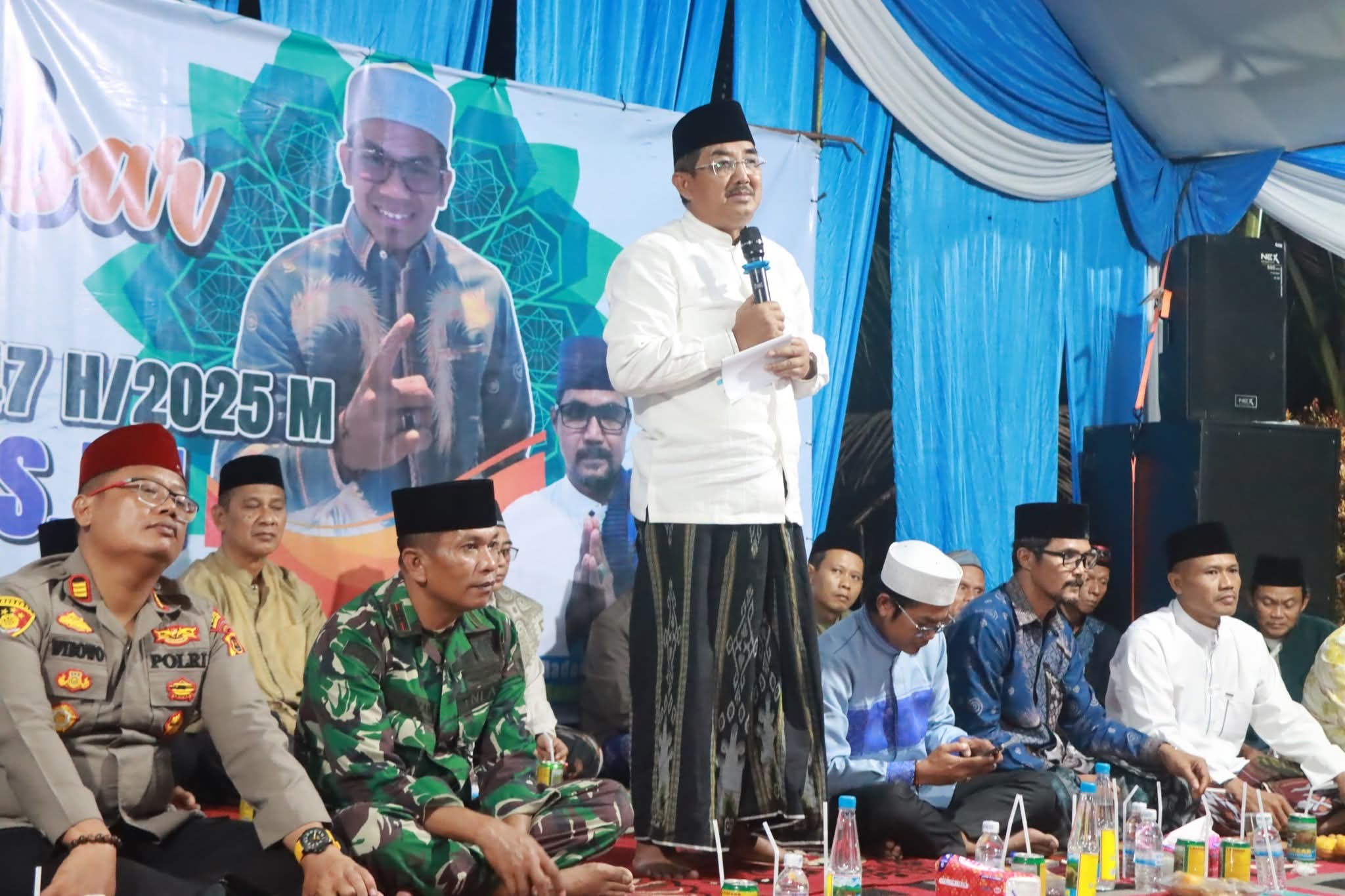 Sementara itu, Ustadz Anugrah dalam tausiyahnya mengingatkan jamaah untuk selalu memuliakan ulama demi keberkahan hidup, dengan menegaskan bahwa ulama adalah pewaris para Nabi. “Kalau kampung mau aman, damai, subur, dan penuh keberkahan, muliakan para ulama dan ustadz, maka Allah akan menurunkan keberkahan di daerah tersebut,” ungkapnya.