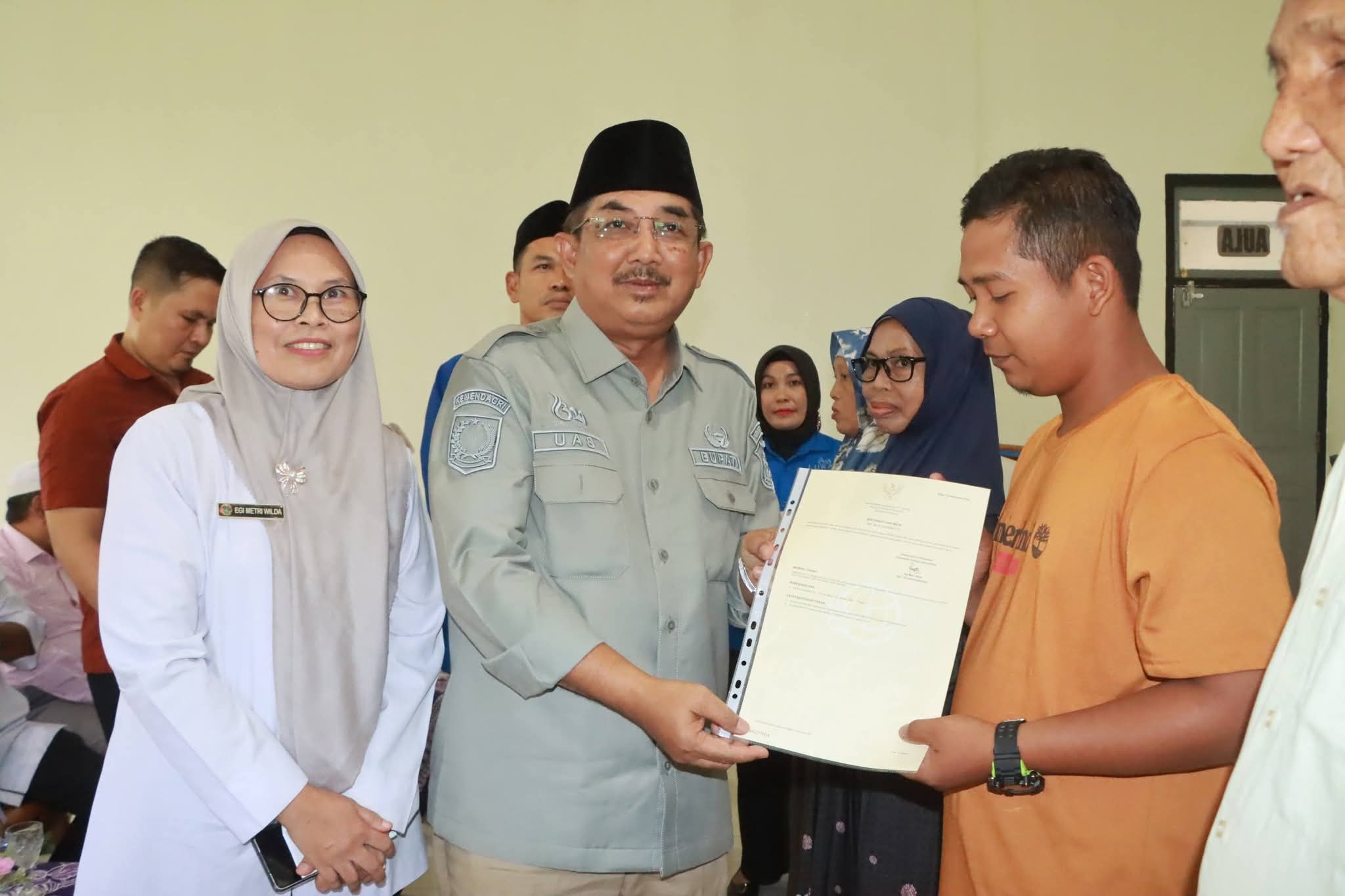 Rilisjambi.com. Tanjab Barat – Bupati Tanjung Jabung Barat, Drs. H. Anwar Sadat, M.Ag., menyerahkan sebanyak 71 sertifikat tanah hasil konsolidasi kepada masyarakat Kelurahan Teluk Nilau, Kecamatan Pengabuan, dalam acara yang digelar di Aula Kantor Camat Pengabuan, Rabu (08/04).