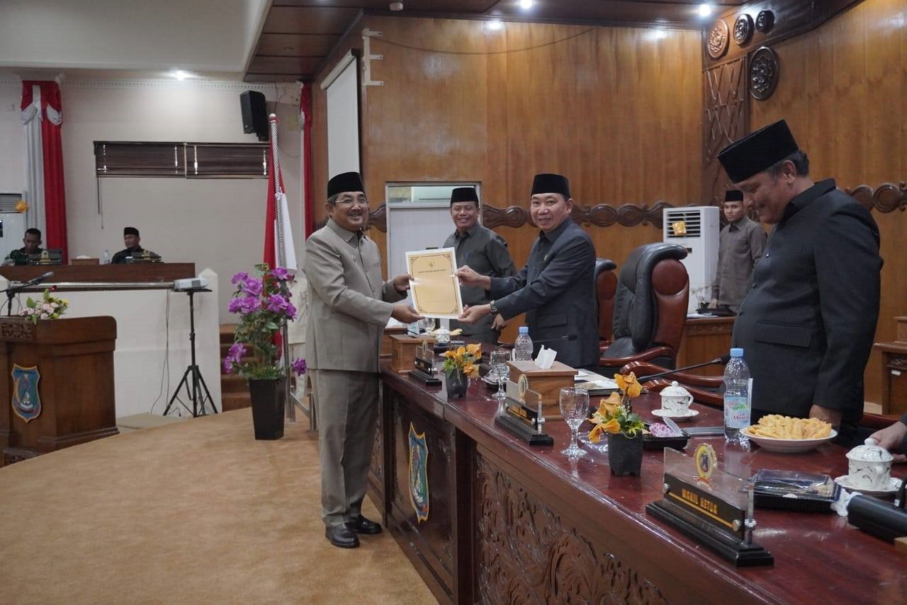 Penandatanganan berita acara Persetujuan bersama antara Bupati Tanjung Jabung Barat dengan DPRD Kabupaten Tanjung Jabung Barat terhadap Rancangan Perda tentang Perubahan APBD Kabupaten Tanjung Jabung Barat Tahun Anggaran 2025 dan pendapat akhir Bupati Tanjung Jabung Barat atas Keputusan DPRD.” Ujar Hamdani dalam penyampaian nya.(*)