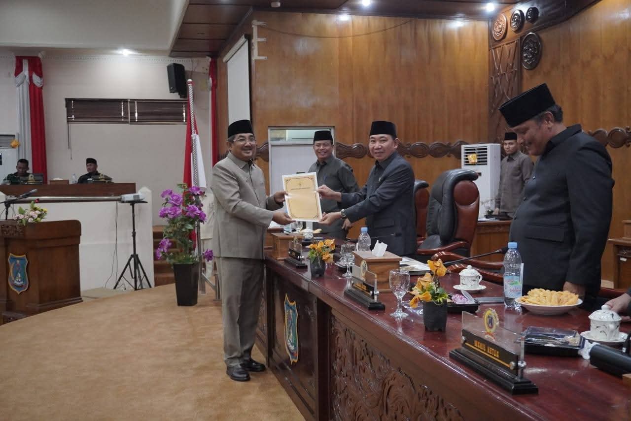 Rilisjambi, TANJAB BARAT– Dewan Perwakilan Rakyat Daerah ( DPRD) Kabupaten Tanjung Jabung Barat, menggelar rapat paripurna Penyampaian Laporan Badan Anggaran, pendapat akhir Fraksi-fraksi Dprd, Pengambilan Keputusan Dprd, Penandatanganan Berita Acara dan Pendapat Akhir Bupati Atas Keputusan Dprd Terhadap Rancangan Perda Tentang Perubahan Apbd Kabupaten Tanjung Jabung Barat Tahun Anggaran 2025. Jum’at (12/9/25).